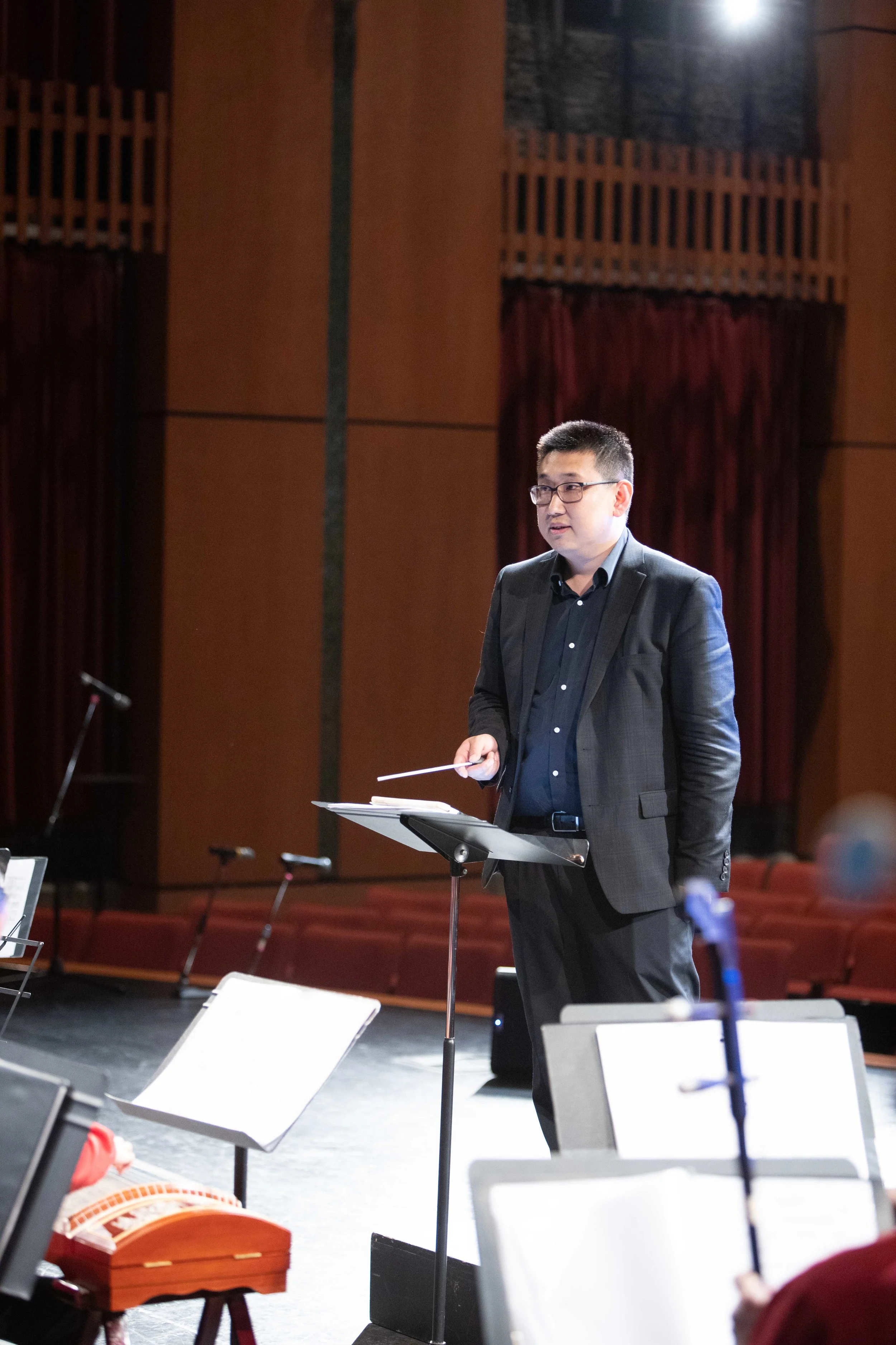 Had my first rehearsal with them on the 19th, and then we went on stage on the 20th. It would have been better if I had more time to play with them. I played daegeum and percussion. They had rehearsed by themselves, and I played with them once before the concert. Playing the daegeum was fine, since I can follow the orchestra, but the percussion was a little bit of a problem. Since the percussion sets the rhythm and tempo, the orchestra is the one who has to get used to me. In addition, they had their own percussion section. So it was like playing percussion to a recording, one of the hardest things to do as a percussionist. And I was situated in the soloist position at the front of the orchestra, so I ended up looking over my shoulder the entire time, trying to listen and follow the orchestra.